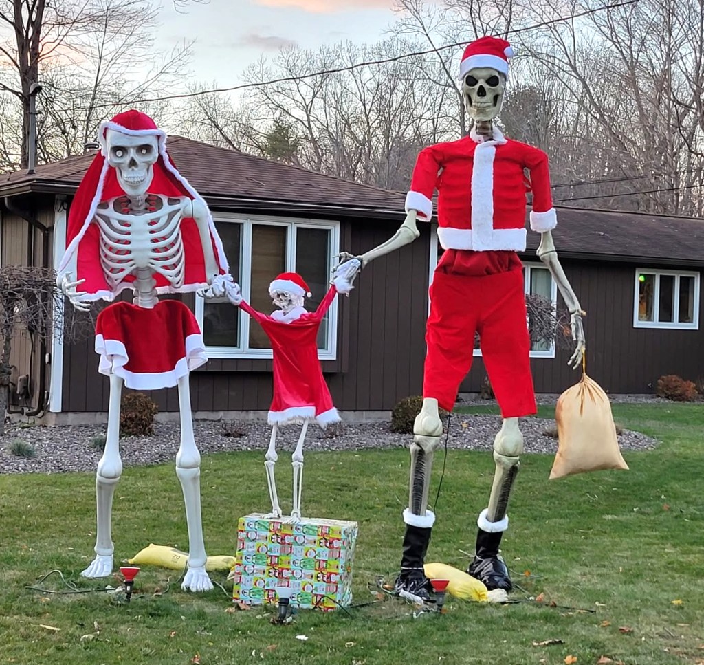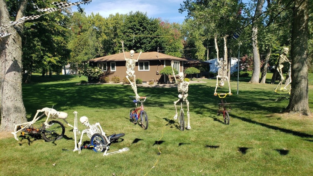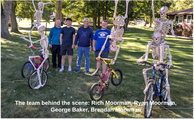 The annual skeleton spectacle is truly a family effort. George credits his wife Melissa for coming up with the creative ideas, his grandson Ryan is a master at manipulating the arms of the monster skeletons, and grandson Brendan came up with the idea to have the bike accident.