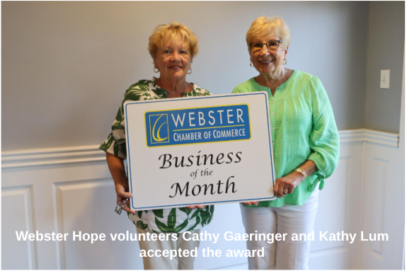 Webster Hope has one paid employee and more than 100 volunteers, active with Scouts, sports teams, schools, churches, and other Webster charities. They’re also always happy to send a speaker to participate in community events.