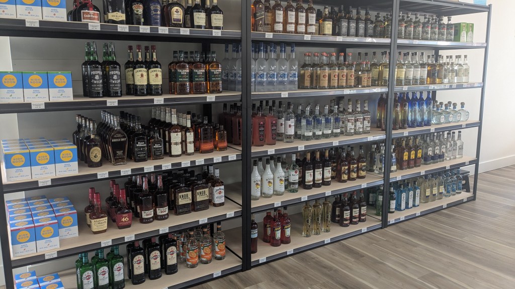 “We didn’t want to go for the typical liquor store footprint, where we have boxes lined up and really congest the (floor space),” he said. “We’re trying to keep it clean and simple and easy to find what you’re looking for, and have variety where at least everybody can find something in a jam.”