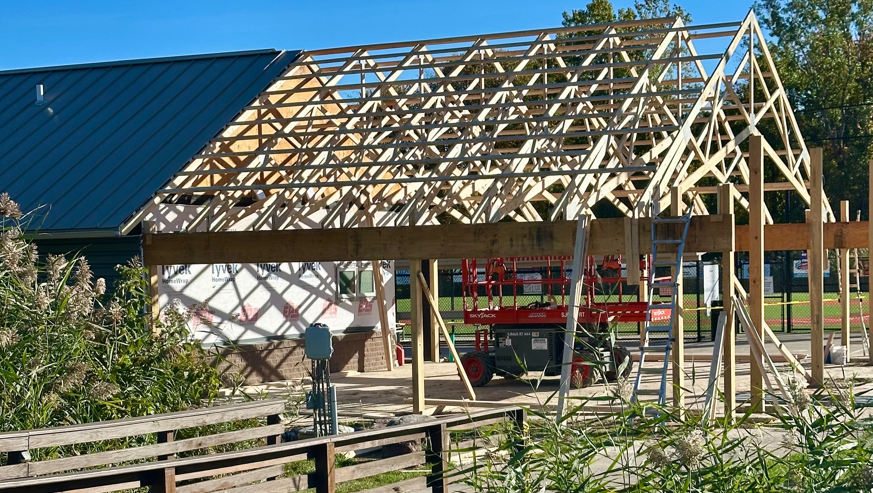 The new space, which is being built on the south side of the existing concession stand, will be a spacious 32′ x 34′. It’ll be enclosed by garage doors which will block the stiff westerly winds and can be opened or closed depending on the weather. That’ll be especially appreciated during winter events, and the extra space will mean Miracle Field administrators will no longer have to rent expensive tents.