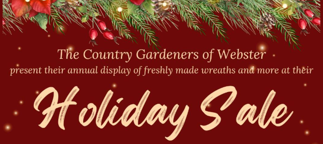 The Country Gardeners of Webster will hold their annual Garden Club Holiday Sale on Saturday December 6 from 9 a.m. to noon at the Webster Recreation Center, 1350 Chiyoda Drive.