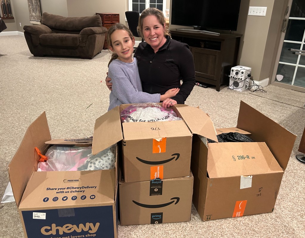 The donations started rolling in almost immediately. By the end of the month, they’d collected more than 140 pieces of dancewear, so many that they covered Linda’s entire family room floor when they were all spread out. With help from Julia and her best friend Lilliana, and Linda’s mom Nancy, they sorted all of the donations and packed them all up into four large boxes, which shipped out last Friday.