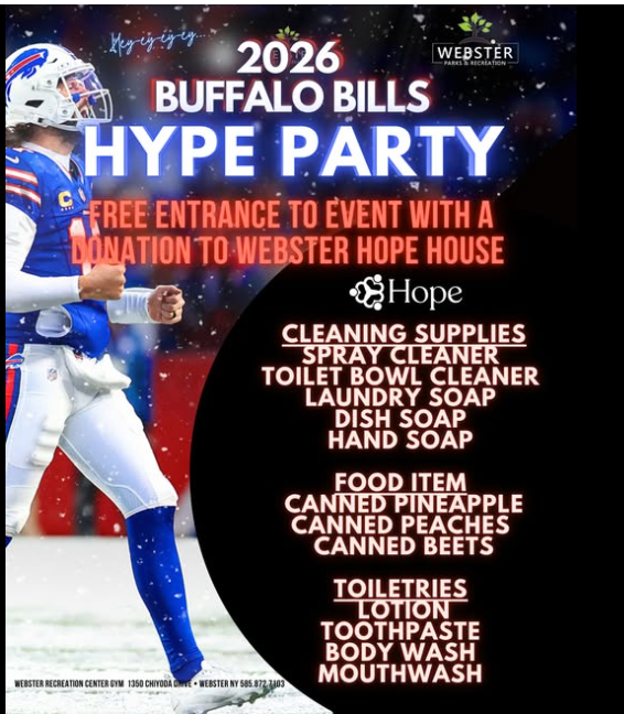 The Buffalo Bills are in the playoffs, which means it’s time to celebrate at the Webster Recreation Center’s Buffalo Bills Hype Party!
