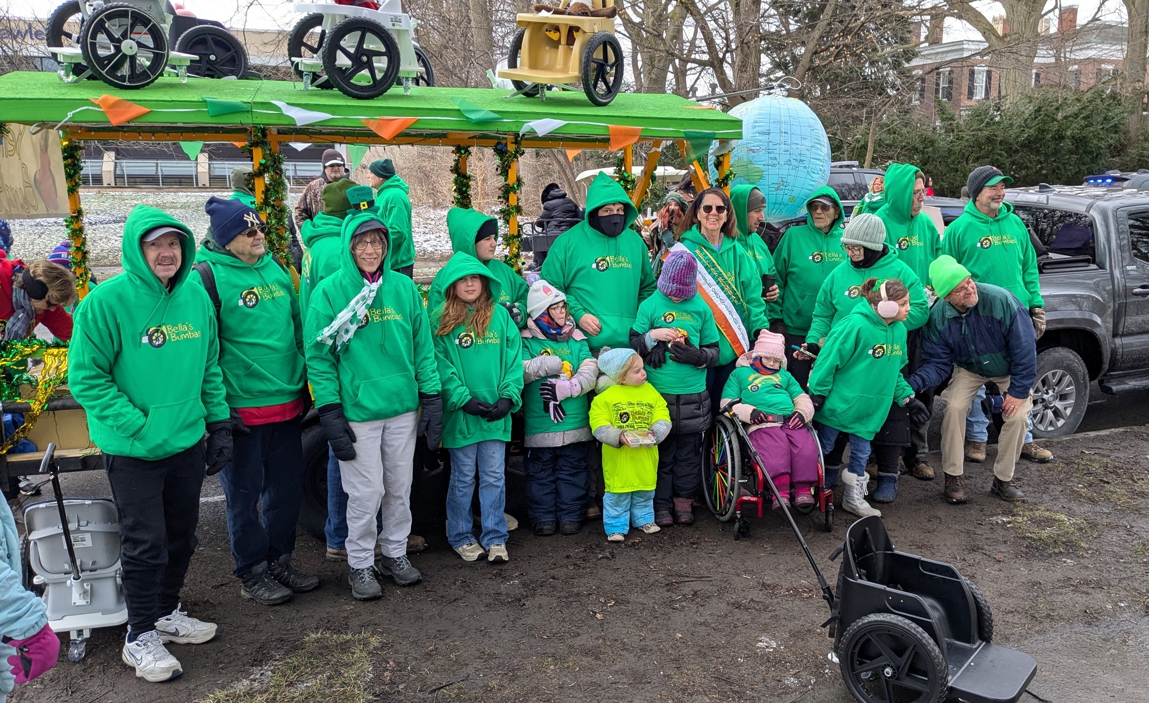 I was honored to help represent Bella’s Bumbas at the Rochester St. Patrick’s Day Parade Saturday afternoon. I was one of more than twenty friends, family members and volunteers who braved the cold temperatures and strong winds to help Marty Parzynski and Rebecca Orr celebrate Bella’s Bumbas’ selection as this year’s Charitable Organization of the Year.