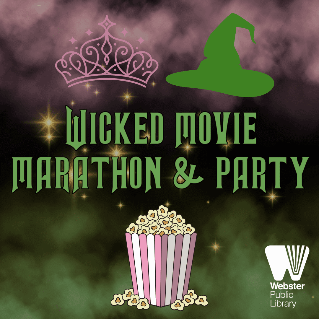 - Wicked Movie Marathon & Party, Tuesday April 28. Movie showings begin at 9:30 a.m. with Wicked, followed by Wicked: For Good at 1 p.m. From noon to 1 p.m., enjoy a party with a light lunch, beverages, and sweet treats, and Wicked trivia. Registration is not needed for the movies, but is required to attend the party. Click here.