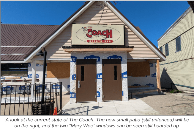 If you’ve passed through the Village of Webster recently, you’ve likely noticed that renovations to the The Coach Sports Bar are still a work in progress. Both the inside and outside have a ways to go before the taps start flowing again at the popular local hangout.