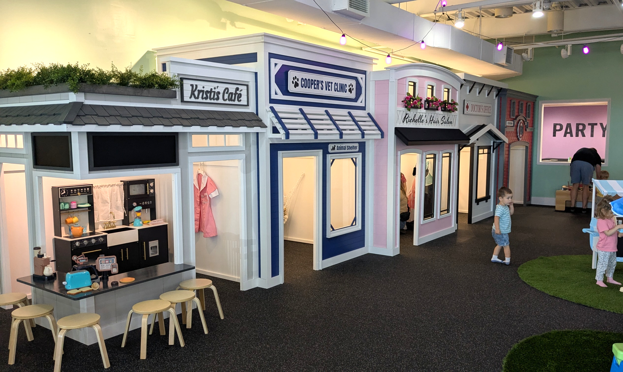It’s basically a great place for parents to unwind with a beverage while their children are exploring, pretending, learning and making new friends.