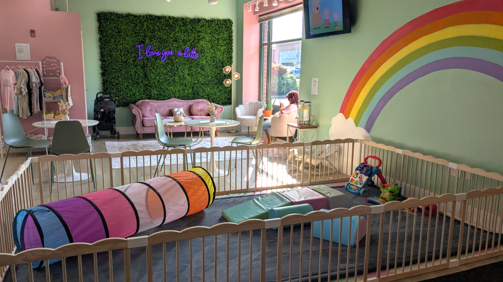 If you’ve never been to Play-a-Latte yet, you really ought to pop in just to see what it’s all about. The bright, kid-friendly space features custom-built playhouses (retail and service shops), surrounding a “central park”-type area with picnic tables and ice cream cart, all encouraging imaginative play. There’s also a fenced-off area for very young children, a party room, and a separate sensory room: a quieter, calmer space with muted lighting, fidget toys and sensory tiles and boards. Plus, there’s plenty of comfortable seating for parents and grandparents, and a nice variety of refreshment options for both adults and children.