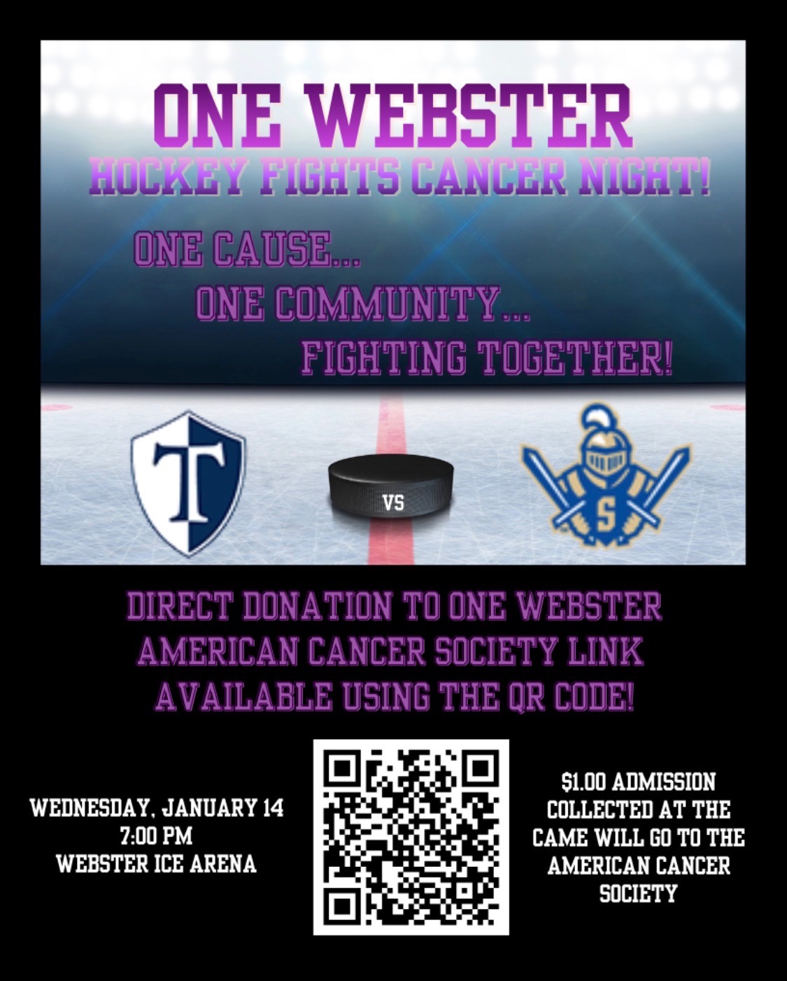 The latest example of this is coming up Wednesday, Jan. 14, when the Webster Thomas and Webster Schroeder varsity hockey teams come together for their first-ever joint One Webster Hockey Fights Cancer Night.