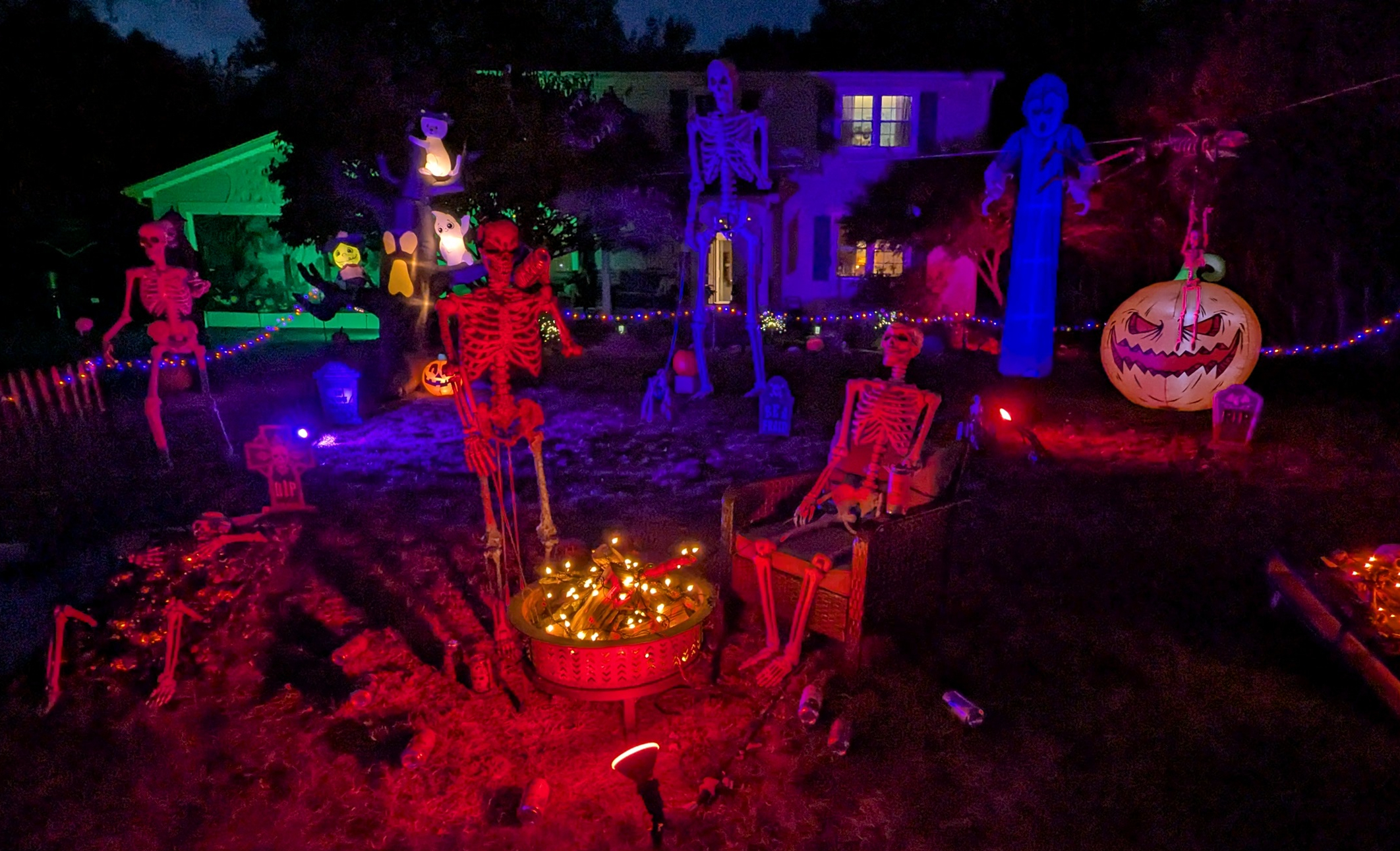 The ever-changing and ever-growing display was born during COVID, and started with just a few elements. It was part of Brian and his wife’s idea to make sure the neighborhood kids could still enjoy Halloween, even during a pandemic shut-down.