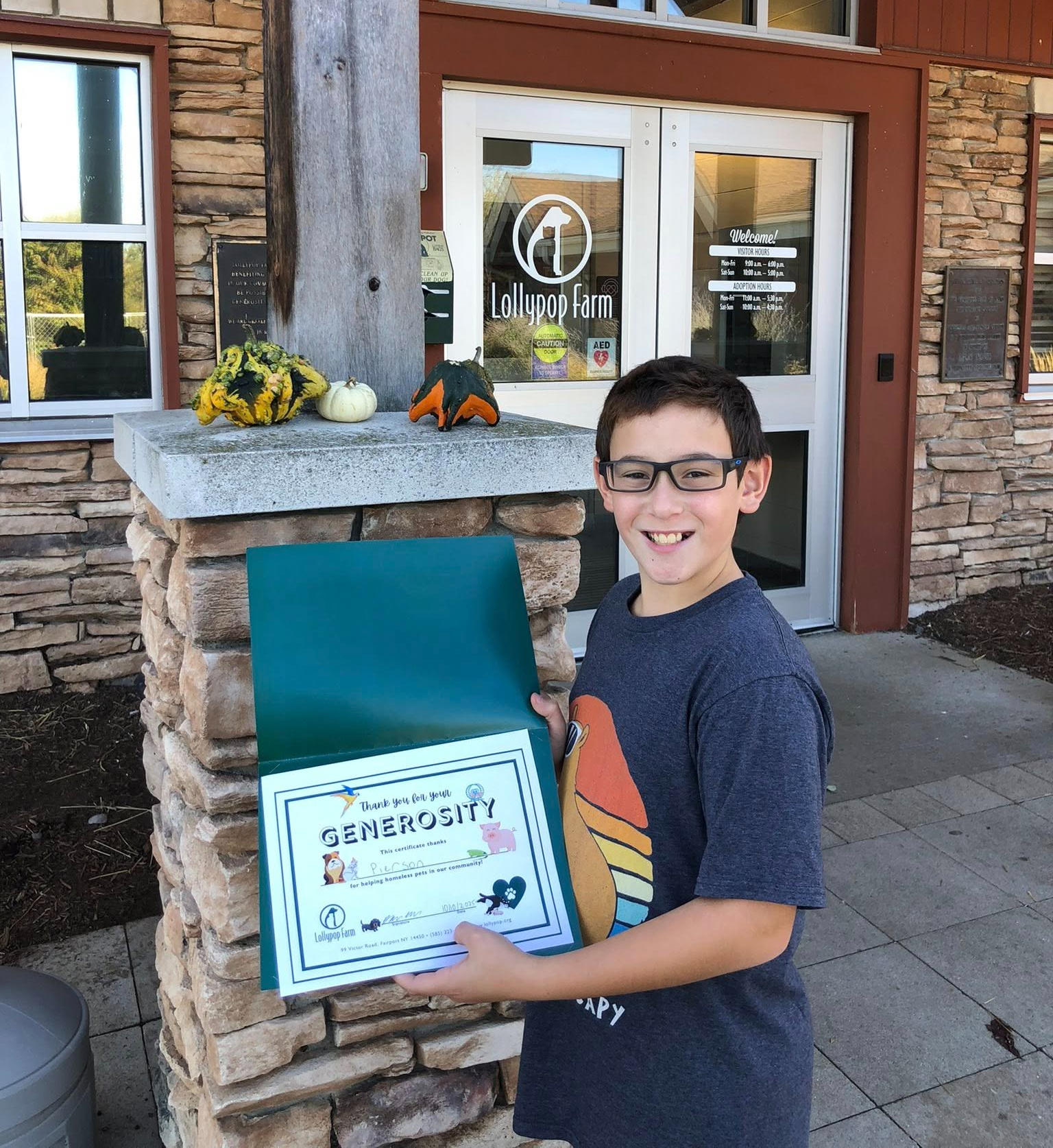 I first wrote about Pierson in September when he donated his first $100 check to the Webster Volunteer Fire Department, and then again in October to report that he’d already raised and donated $200 more, to Lollypop Farm and Honor Flight Rochester.