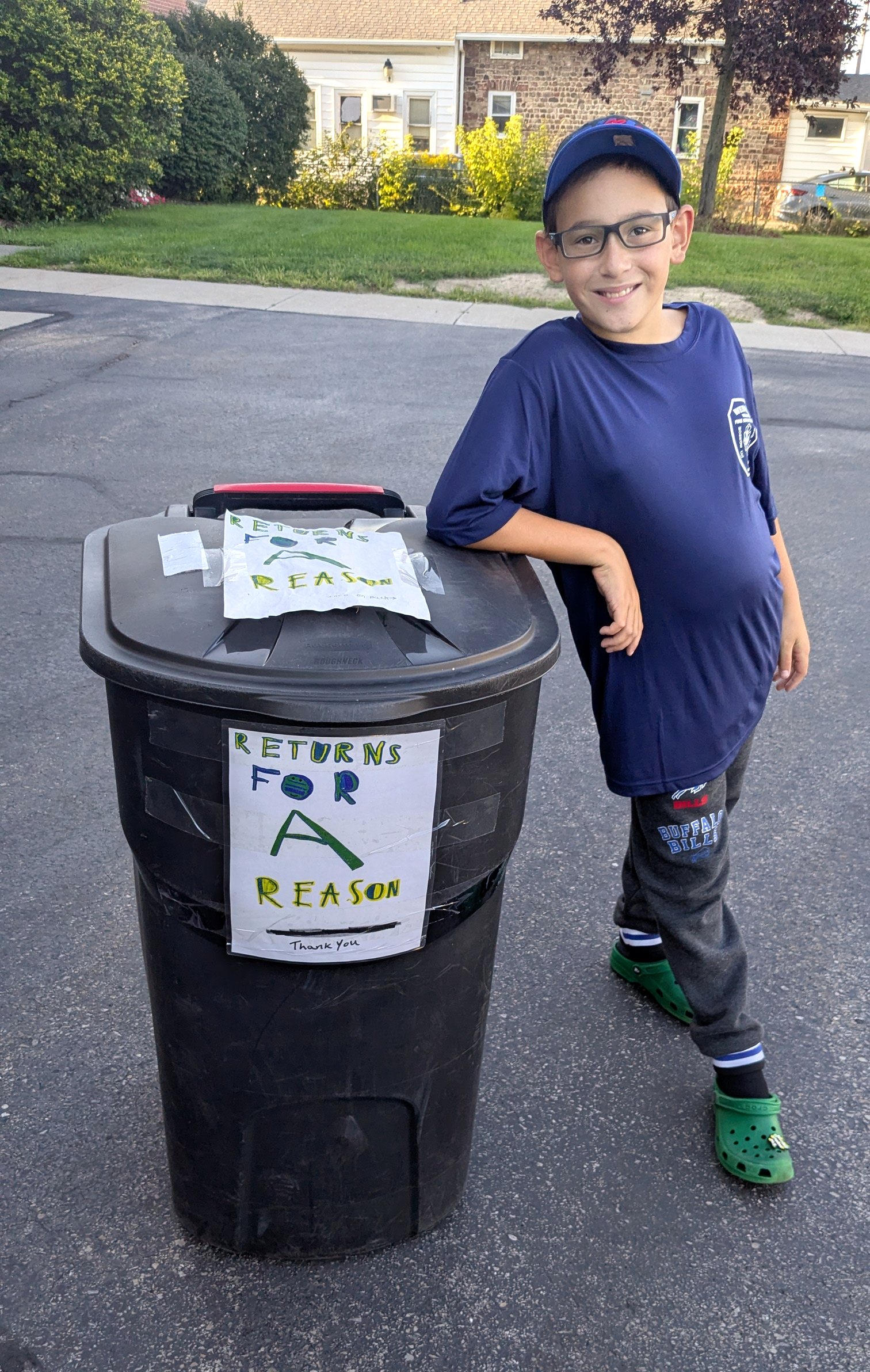 You remember Pierson Farina. He’s the Spry Middle School 6th grader who established his own fund-raising operation earlier this year which he calls “Returns for a Reason.” His goal is to collect returnables from family members, neighbors, schoolmates, strangers — anyone and everyone — and every time he raises $100, he donates it to some worthy organization.