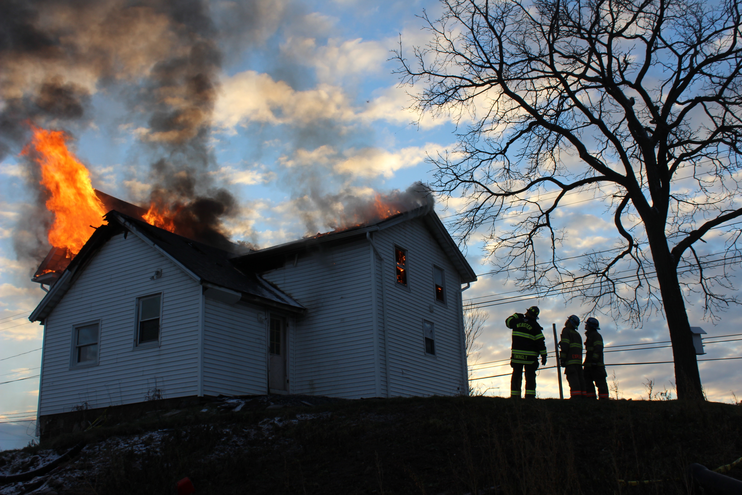 This controlled burn, held as a training exercise by the Webster Volunteer Fire Department on Ridge Rd. east of the village, provided several opportunities for artistic photos. (Nov. 2017)