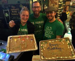 • 7 to 10 p.m.: live Irish Music by Sean & Sarah of Barry’s Crossing! They were our first ever musicians to play at the pub, and for a long time were the “house band.” They haven’t played together in a long time, and are reuniting for this performance.