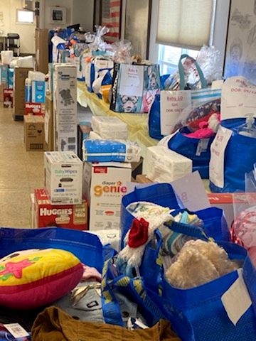 Blue Star Mothers president Amy VanDerwerken said, “We love how the local community comes together to support this event. They allow us to provide diapers, clothes, wipes, bibs, blankets, bottles, toys, books, etc.” Besides the many individuals who donate from the Amazon Baby Shower list, they also receive donations from several local businesses and community organizations.