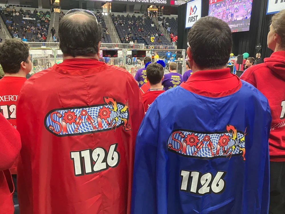 If you’ve never been to one of these events, try to picture something between a high-stakes engineering lab and a high-energy rock concert. It’s loud, fast-paced, and despite its competitive nature, is quite the community event — for the audience members and competitors alike. The stands are filled with students in bright, themed costumes (including capes and tutus). There’s constant music and team chants, and an emcee offering play-by-play commentary.