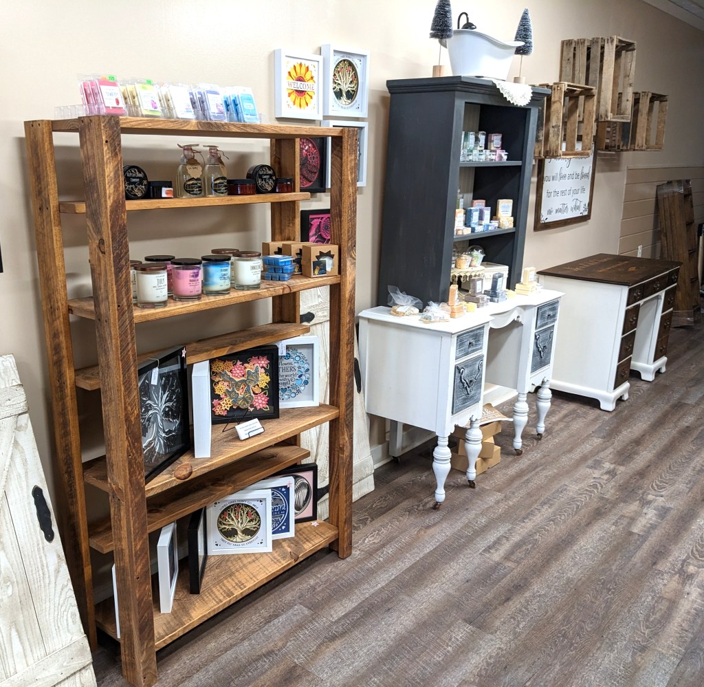 Their new shop, located at 1864 Rt. 104 East in Ontario, measures 3,000 square feet, several times larger than the original. That means a LOT more space to display their own hand-crafted products, feature lots of local crafters, and devote a spacious back room to paint parties.