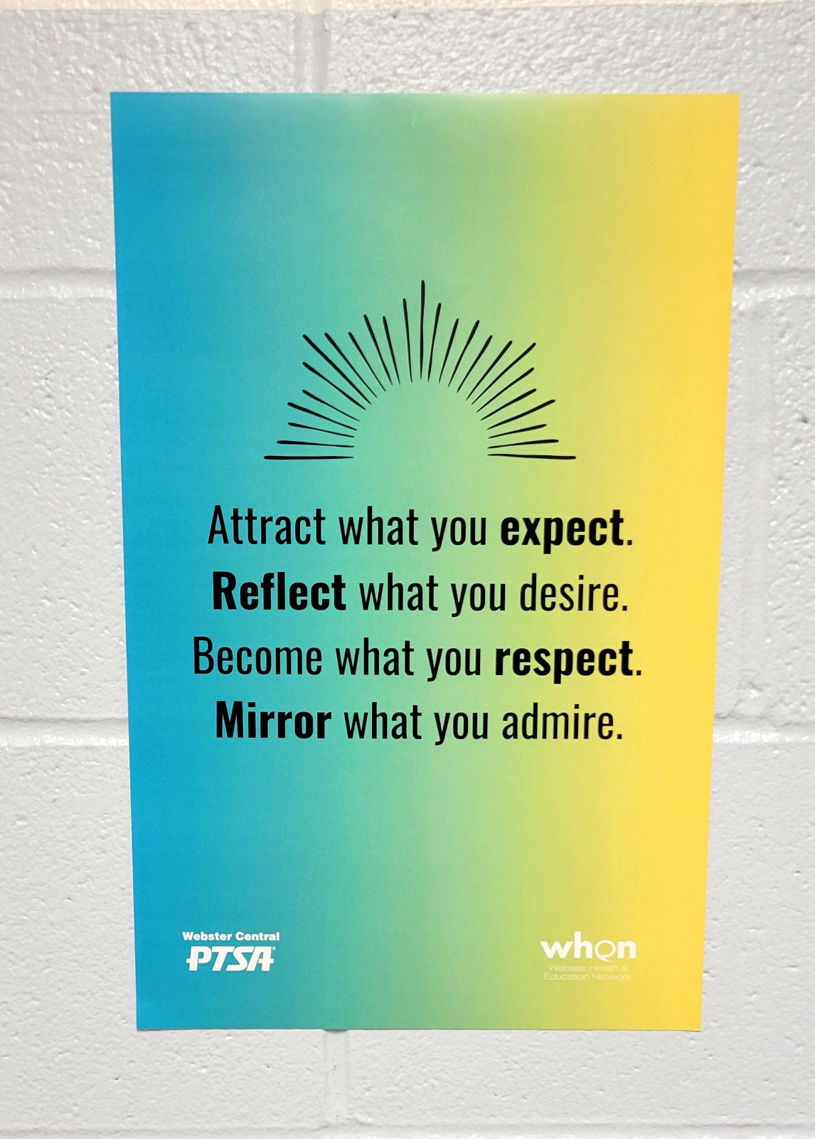 Our Webster secondary students got a dose of positivity Wednesday morning, when they arrived at school to discover sticky notes attached to their lockers. Each of the multi-colored notes carried a self-affirming message encouraging individuality, internal strength, perseverance, resilience and more.