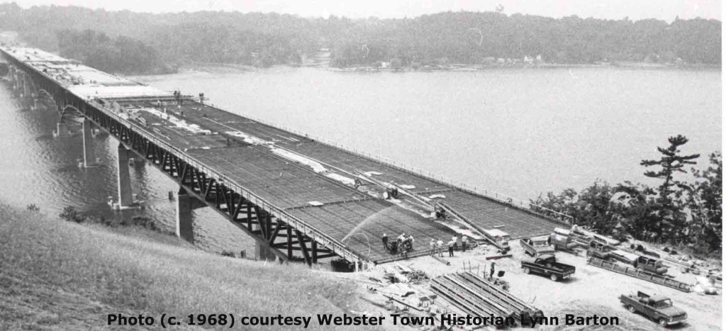 Seven months later, on a much sunnier and warmer late August day, the bridge was officially dedicated with not one, but three ribbon cutting ceremonies; one held at the Irondequoit end, a second in the middle and a third at the Webster end.