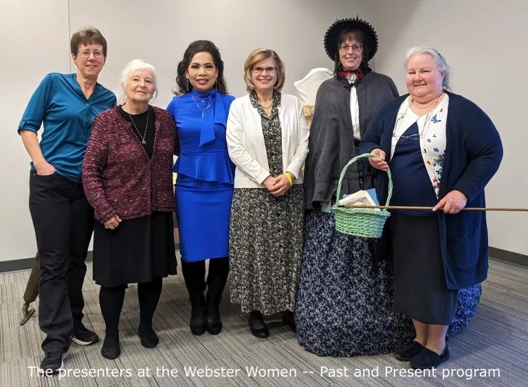 About 30 people gathered in the library’s Community Room Thursday afternoon to listen to six Webster women tell their stories of what was — or is — notable about their lives. I was honored to be included in that outstanding group of women, speaking for around five minutes mostly about how I began my Webster on the Web blog and how it’s become a valued resource in our community.